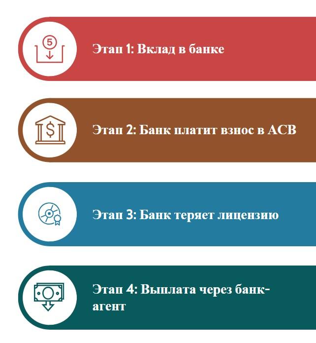 Средства, из которых при необходимости будут выплачиваться компенсации, аккумулируются в специальном фонде. Управляется этим фондом государственное Агентство по страхованию вкладов (АСВ). Банки-участники передают взносы с определенной периодичностью (обычно ежеквартально), формируя общую «копилку», призванную гарантировать компенсации при наступлении страхового случая. - Страховой случай