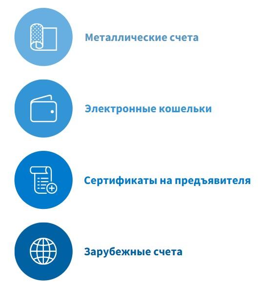 Эти счета отражают право собственности на определенное количество металла (золото, серебро и т. п.), но не являются классическими депозитами — государство их не страхует. - Публичные депозитные счета